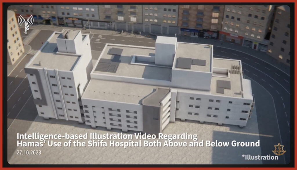 “[…] L’accusa secondo cui Hamas usa i civili come ‘scudi umani’ è un pretesto standard per prendere di mira tutti i palestinesi […]. Le strutture civili, che godono di uno status protetto, possono essere prese di mira grazie a comode dichiarazioni sui ‘centri di comando’ di Hamas, corredate da diagrammi e illustrazioni inventate per fornire una parvenza di credibilità”.